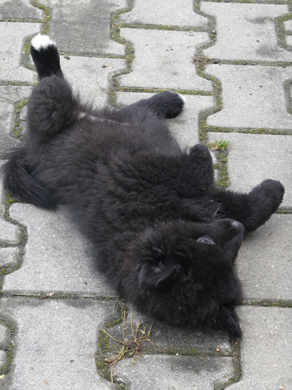 Štěňátka zdárně rostou, jména jsou vybraná. Hledám zájemce o další chov velkých špiců pro černou fenu DARSY a bílého pejska DARRENA. Více nových fotek štěňátek ve fotogalerii.